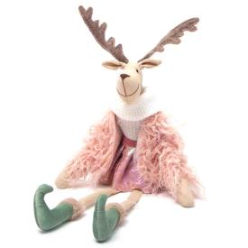 Una dolcissima renna con cappotto, sciarpa e cappello realizzato in tessuto con dimensione cm.32x10xh54. Un tenero e originale pupazzo natalizio da regalare o posizionare in casa.