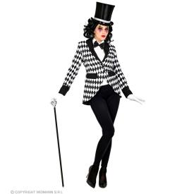 Entra in scena con un'eleganza androgina e un tocco di classe teatrale indossando la nostra giacca frac nera per donna. Questo capo sofisticato è perfetto per completare un costume da presentatrice di circo, una domatrice di leoni, un look à la Marlene Dietrich, o per un travestimento da illusionista. Perché scegliere un abito qualunque quando puoi dominare la scena con una giacca iconica? Con questo frac da donna, il tuo stile sarà audace, potente e indimenticabile.