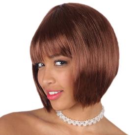 Il vantaggio di questa parrucca per carnevale è il suo taglio netto e il colore vibrante. È un caschetto (bob) corto, liscio e di un rosa shocking intenso, completato da una frangia dritta che mette in risalto lo sguardo. Realizzata in fibra sintetica di poliestere, ha un aspetto lucido e una linea geometrica perfetta. È l'acconciatura ideale per cosplay, costumi da personaggio di anime, look da e-girl, o per un party a tema "color".