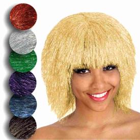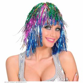 Questa parrucca corte di Widmann è realizzata con strisce di lamé di poliestere, un materiale che riflette la luce creando un effetto metallico e cangiante spettacolare. È molto più luminosa di una parrucca sintetica standard. La calotta interna è elasticizzata e traspirante, per una vestibilità comoda e adatta a tutti. Il taglio a caschetto (bob) è un classico che non passa mai di moda e che valorizza il viso. È una delle idee parrucche originali più belle per un look forte e deciso, ideale per parrucche per adulti e bambini.