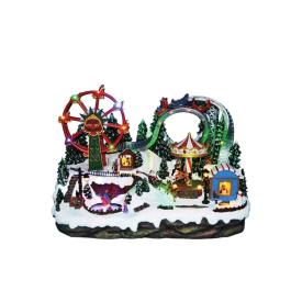 Porta la magia delle festività a casa tua con questo incantevole villaggio di Natale con trenino. Questa decorazione, completa di luci, movimento e suoni, raffigura un trenino con Babbo Natale che circonda un villaggio incantato, creando un'atmosfera festosa e coinvolgente. È la scelta ideale per chi cerca una decorazione natalizia animata che sia un classico intramontabile. Se vuoi un pezzo che porti meraviglia a grandi e piccini, questo è perfetto.