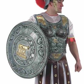 Lo scudo è realizzato in plastica rigida stampata, con decorazioni in rilievo che simulano il metallo battuto e motivi geometrici o floreali tipici dell'epoca classica. Sul retro sono presenti impugnature o cinghie per tenerlo saldamente al braccio. Le dimensioni Ø45 cm lo rendono adatto sia ad adulti che a ragazzi. È un elemento scenico fondamentale: un legionario senza scudo è solo un uomo con una tunica. Nella categoria armi giocattolo storiche, lo scudo non serve solo a difendere ma a completare la silhouette del guerriero.