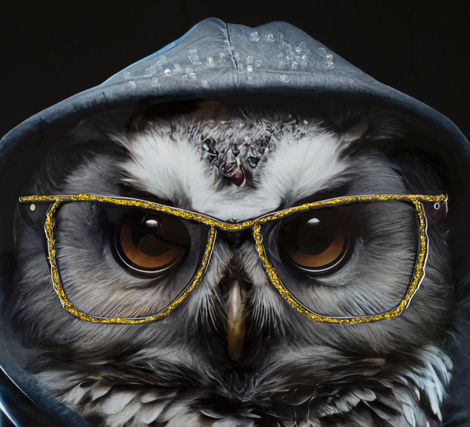 Quadro con stampa su tela con ritocco in rilievo con disegni astratti tipo graffiti.