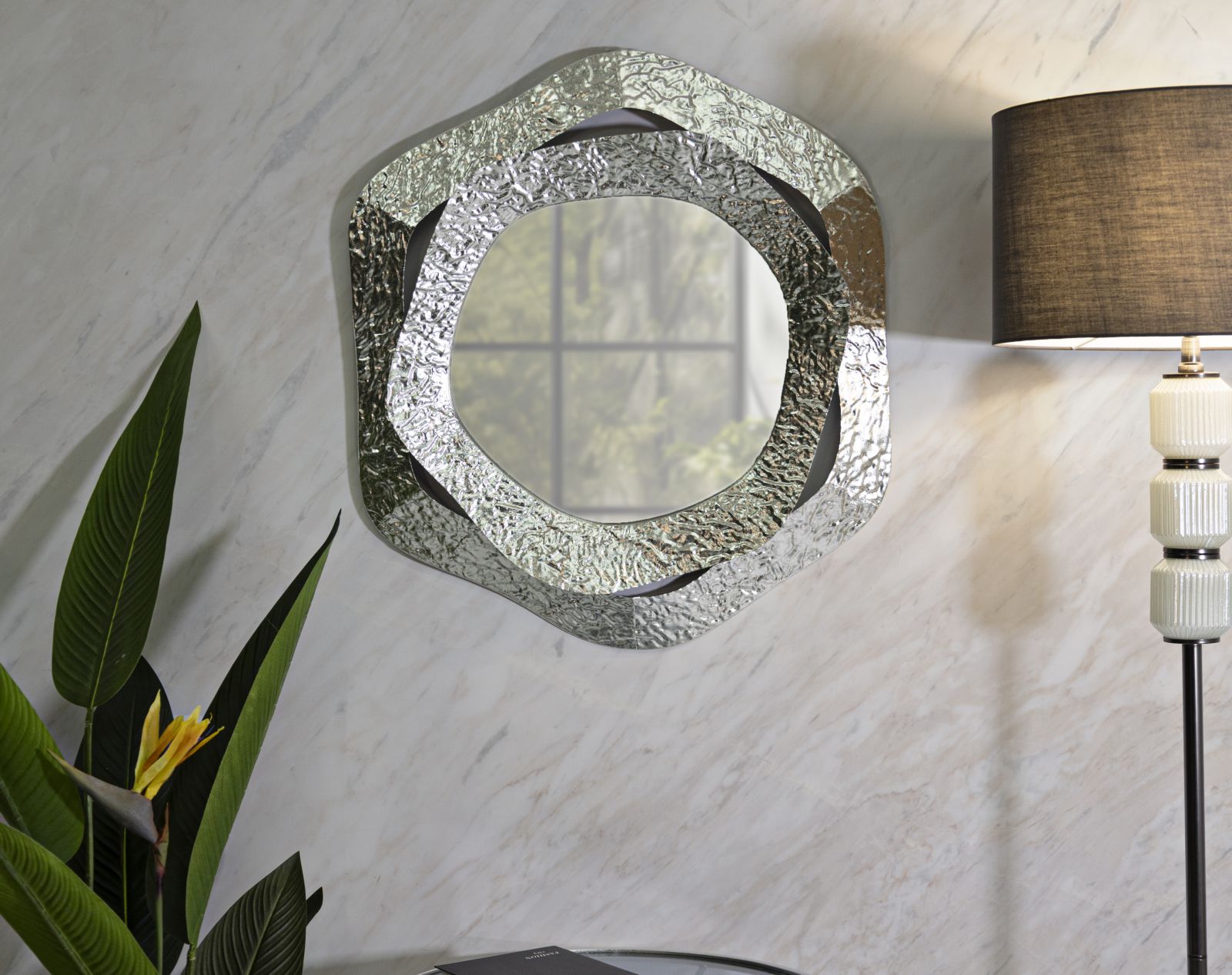 Specchio a parete quadrato con cornice a specchio invecchiata.