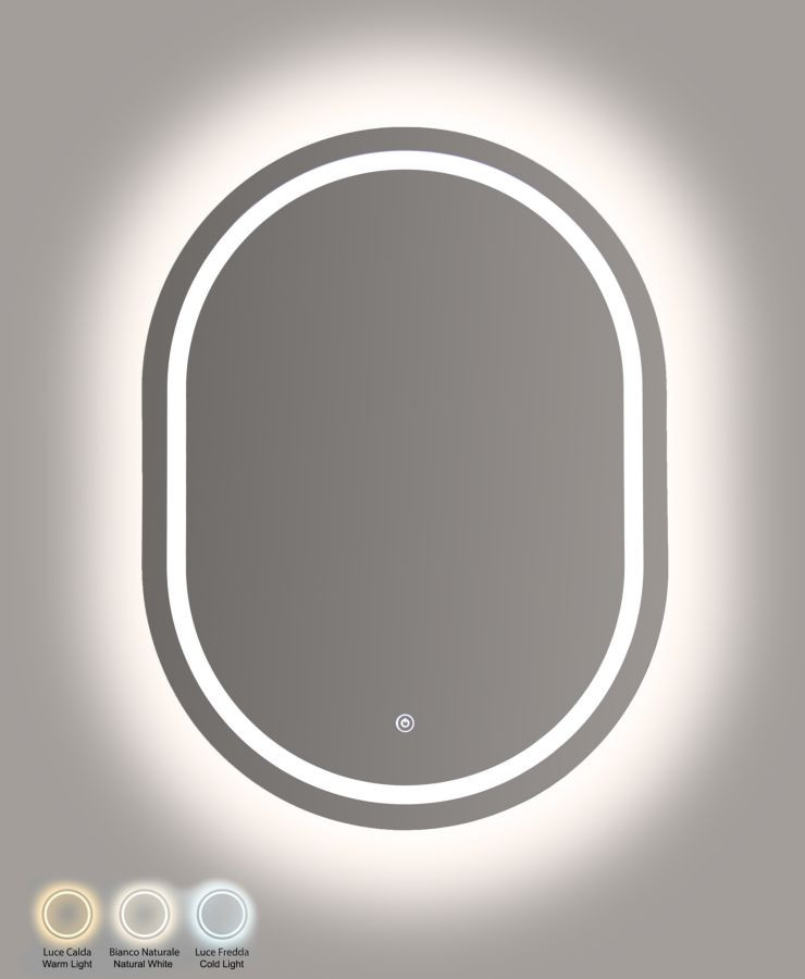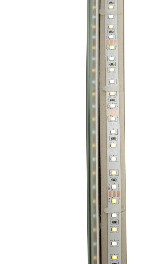 Specchio Lamart in legno verniciati di colore rosso e rosa, con illuminazione a LED ci colore rosso, dimension...