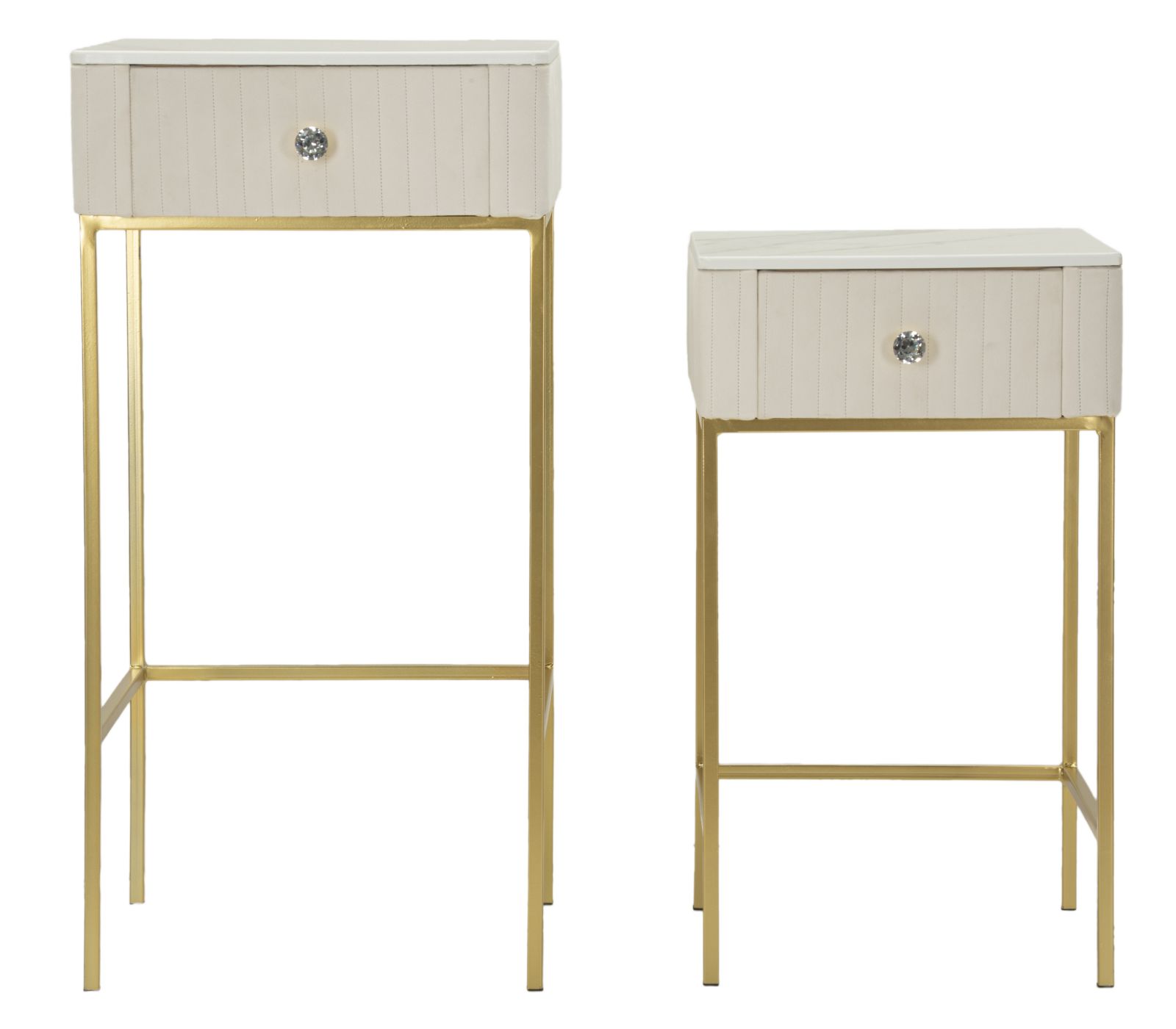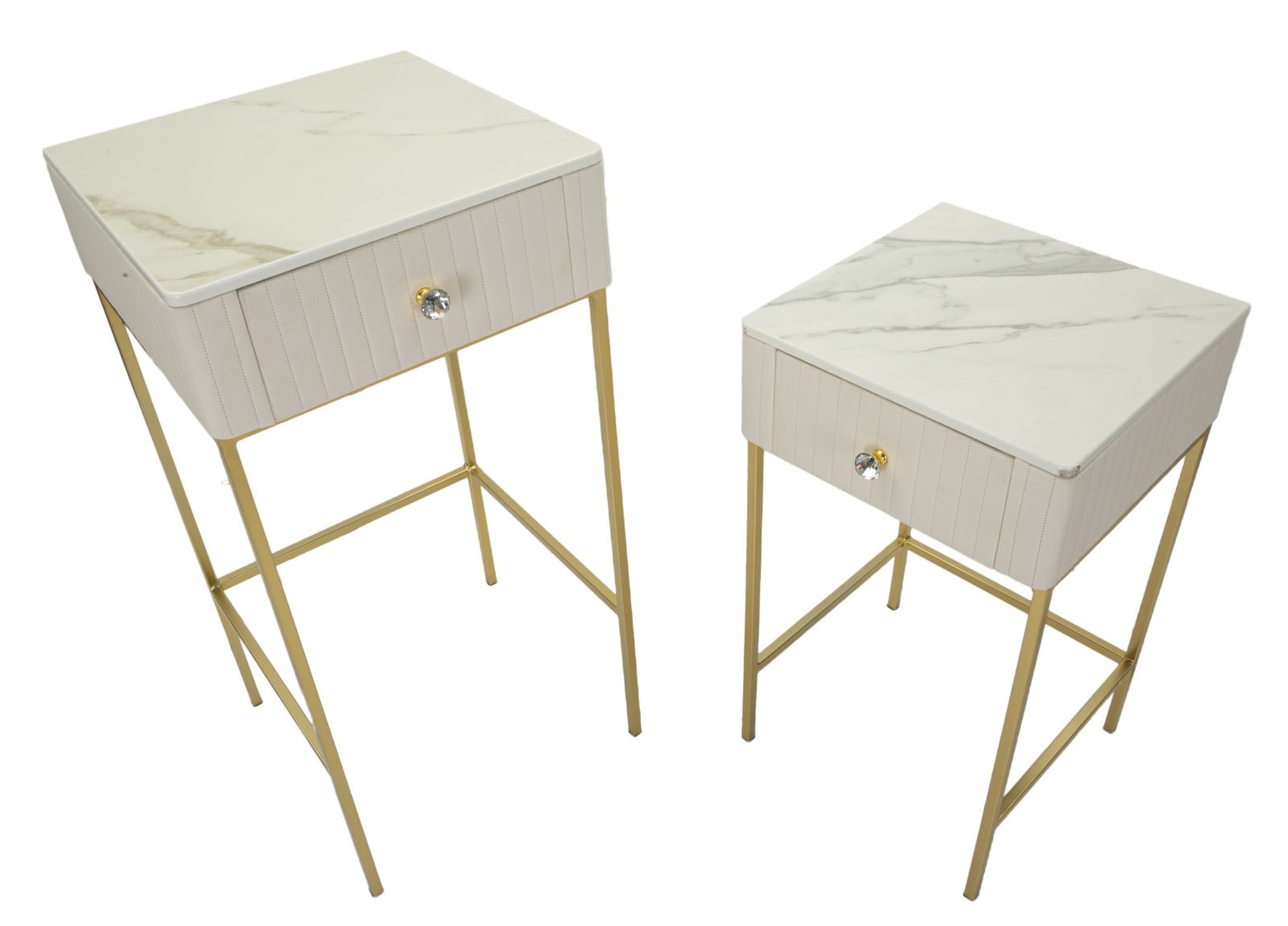 Set composto da 1 Tavolino grande (Ø37x47 cm) e 1 Tavolino piccolo (Ø31x42 cm).